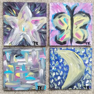 I have no formal training in painting, it's just something I decided to do one day! I have found it to be a great stress reliever and a confidence booster. It gives me focus when I need it.