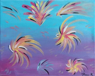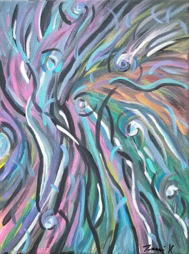 Sometimes I have a specific subject matter in mind, but mostly I paint with no objective - I just pick some colors and see what happens!